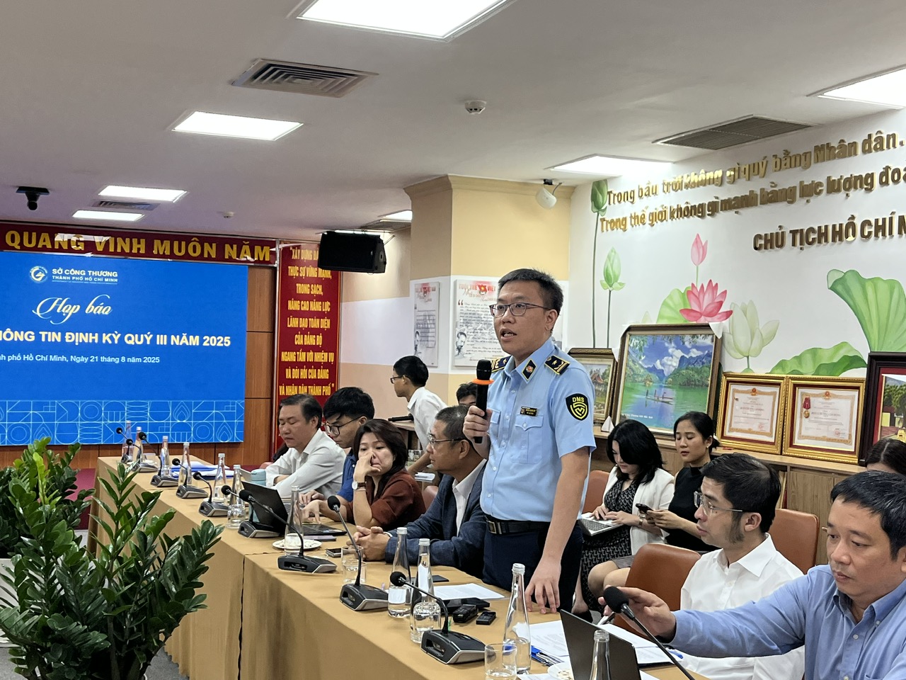 Ông Nguyễn Quang Huy, Phó Chi cục QLTT TPHCM thuộc Sở Công Thương TPHCM cung cấp thông tin định kỳ quý III/2025. Ảnh: VGP/Lê Anh